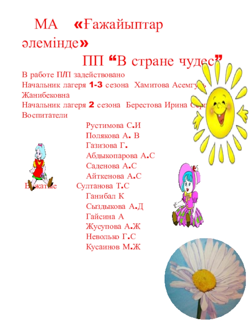 Начальник П/П «В стране чудес» Хамиитова А .Ж