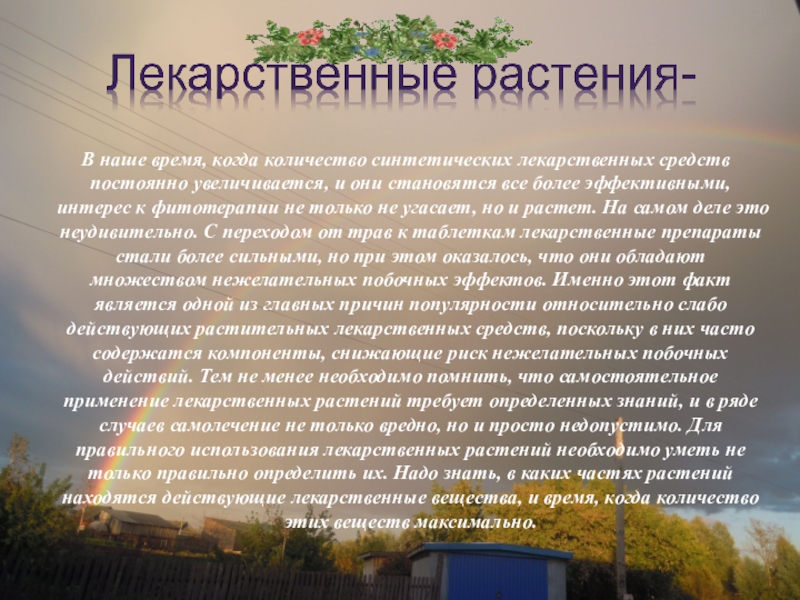 Слайд 3 В наше время, когда количество синтетических лекарственных средств постоянно
