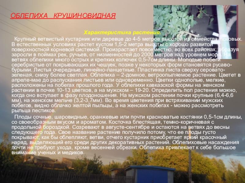 Слайд 4ОБЛЕПИХА КРУШИНОВИДНАЯ