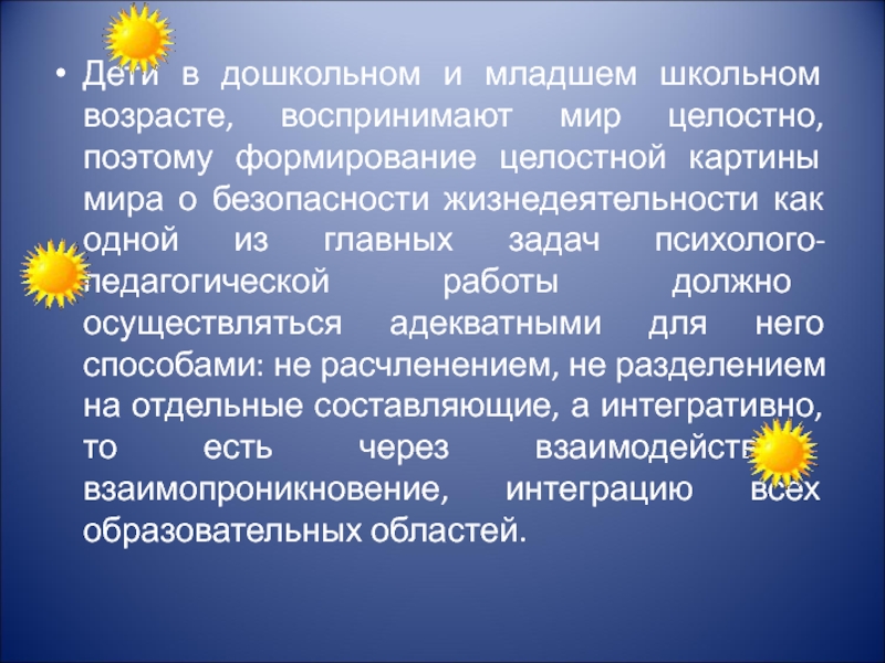 Слайд 3Дети в дошкольном и младшем школьном возрасте, воспринимают мир целостно, поэтому