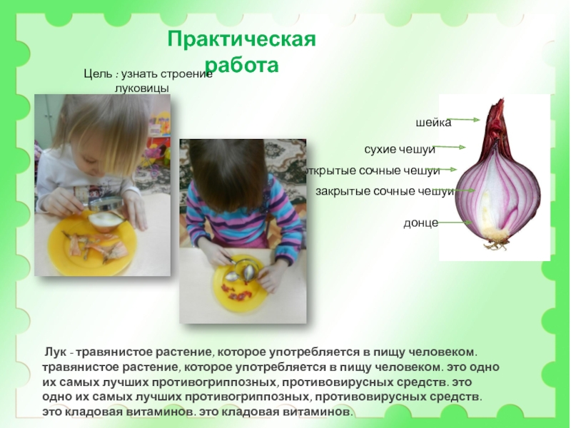 Лук растет, а мы собираем о нем информацию и записываем в таблицу.