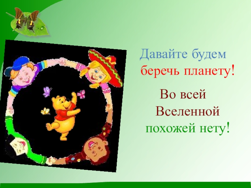 Давайте будем беречь планету!Во всей Вселенной похожей нету!