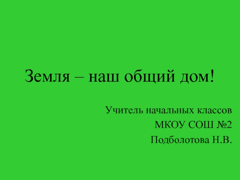 Земля – наш общий дом!Учитель начальных классов МКОУ СОШ №2Подболотова Н.В.