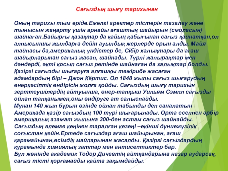 өміріндегі пайдасы мен зияны туралы, кейбір сағыздың құрамында адам ағзасына қажетті заттардың бар екенін зерттедім.