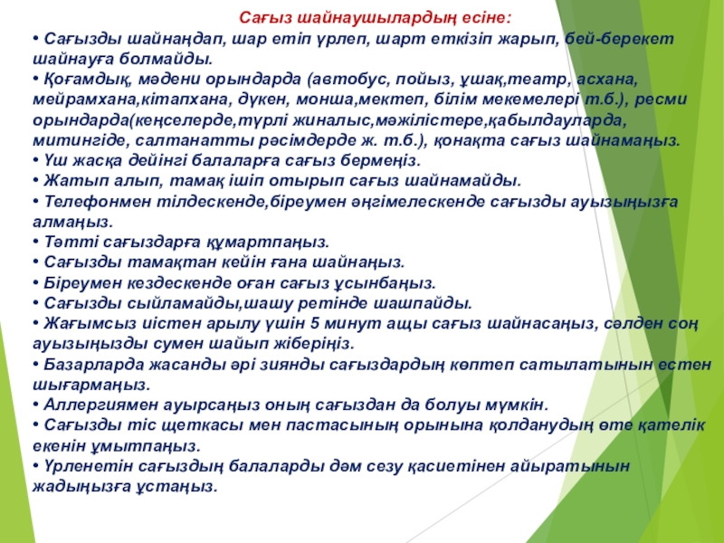 • Біреумен кездескенде оған сағыз ұсынбаңыз.