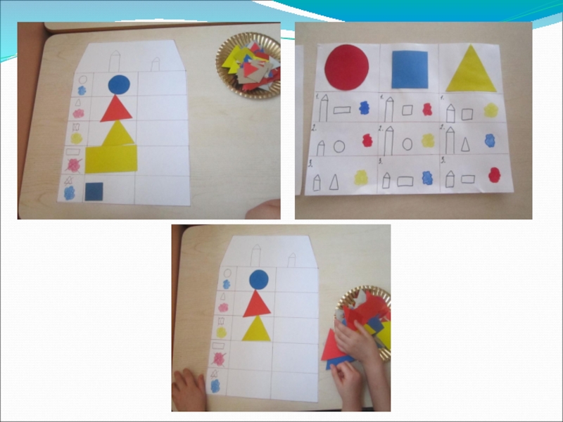 шешуге үйрету.Аталмыш логикалық материал 48 логикалық блокты топтамадан тұрады. Пішінімен- үшбұрышты, дөңгелек, шаршы,тіктөртбұрышты пішіндер. Түсімен-қызыл, сары, көк пішіндер.