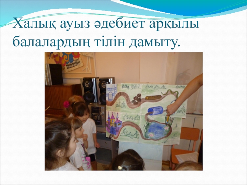 Слайд 15Халық ауыз әдебиет арқылы балалардың тілін дамыту.