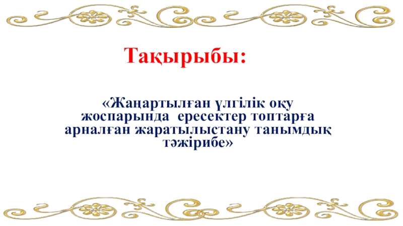 Презентация, доклад на тему Жаңартылған үлгілік оқу жоспарында ересектер топтарға арналған жаратылыстану танымдық тәжірибе