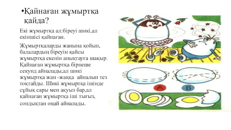 Слайд 3Қайнаған жұмыртқа қайда?