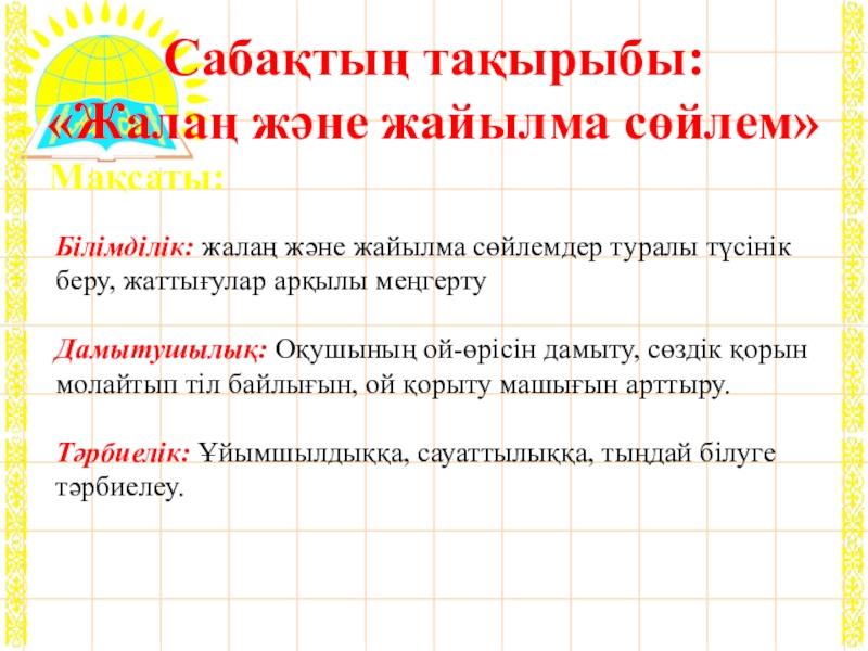 Білімділік: жалаң және жайылма сөйлемдер туралы түсінік беру, жаттығулар арқылы меңгерту