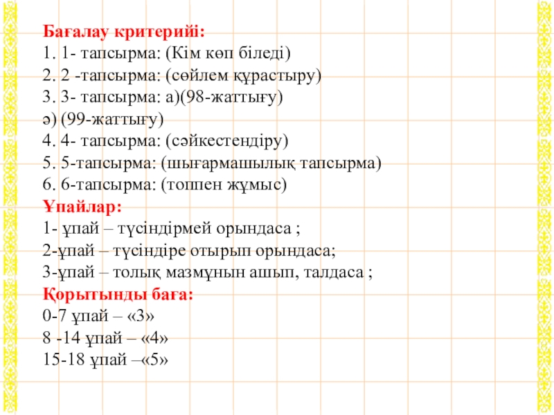 Дамытушылық: Оқушының ой-өрісін дамыту, сөздік қорын молайтып тіл байлығын, ой қорыту машығын арттыру.