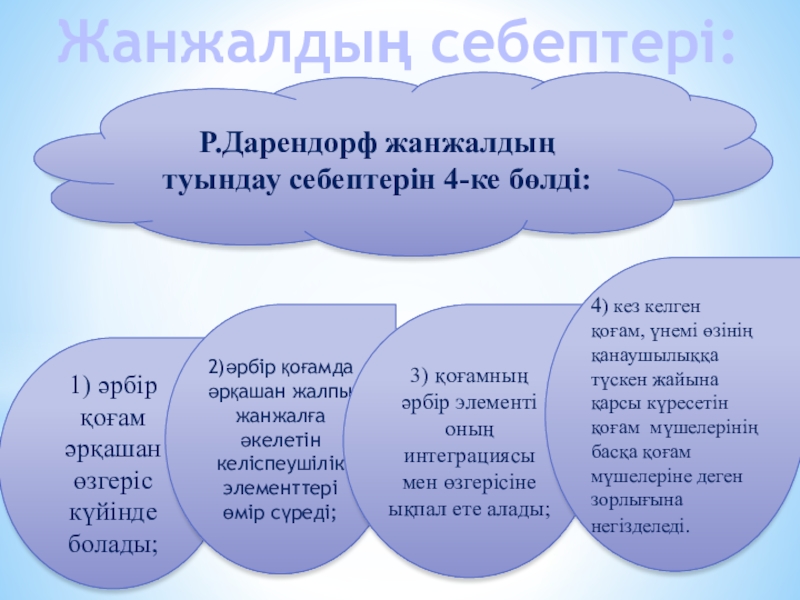 2)әрбір қоғамда әрқашан жалпы жанжалға әкелетін келіспеушілік элементтері өмір сүреді;