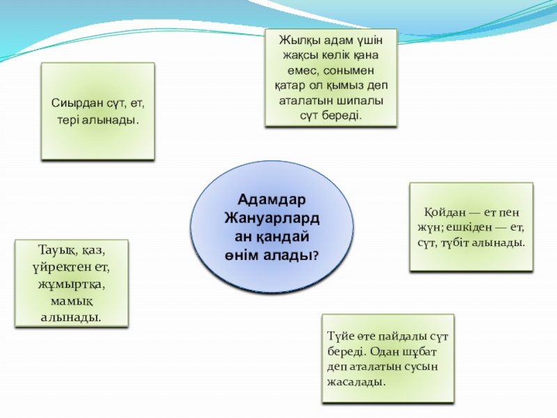 Қойдан — ет пен жүн; ешкіден — ет, сүт, түбіт алынады.