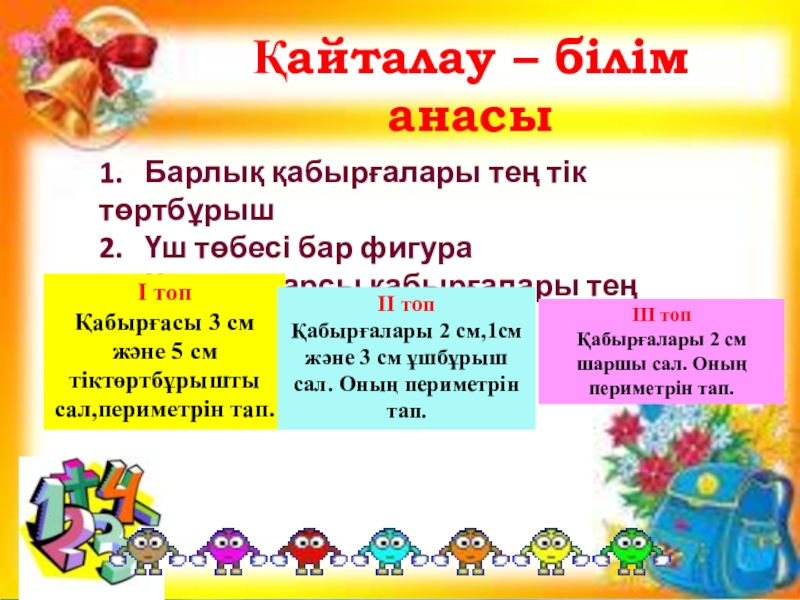 Қабырғалары 2 см шаршы сал. Оның периметрін тап.
