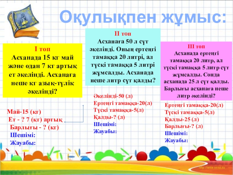 Асханаға 50 л сүт әкелінді. Оның ертеңгі тамаққа 20 литрі, ал түскі тамаққа 5 литрі жұмсалды. Асханада неше литр сүт қалды?