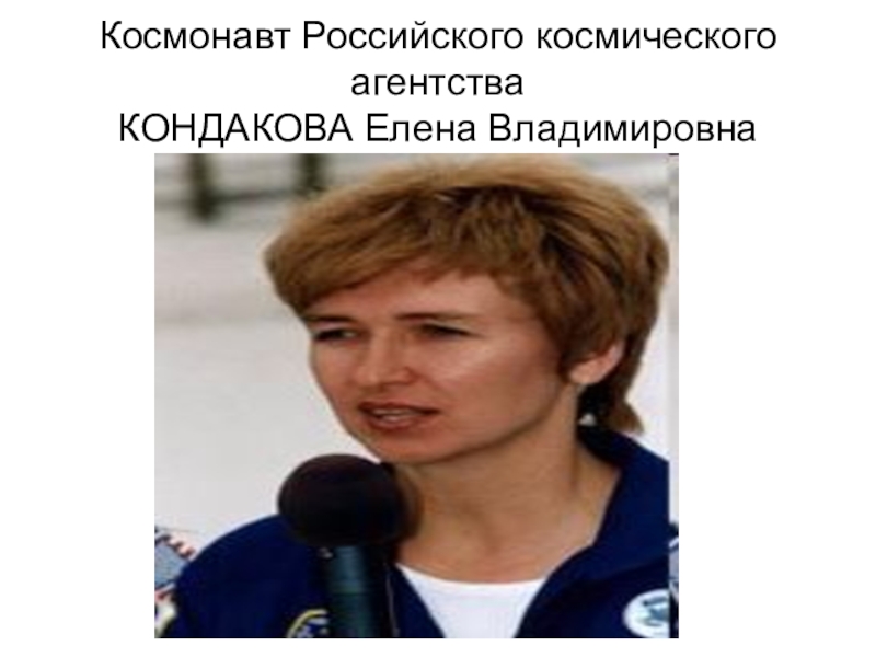 Слайд 10Космонавт Российского космического агентства КОНДАКОВА Елена Владимировна