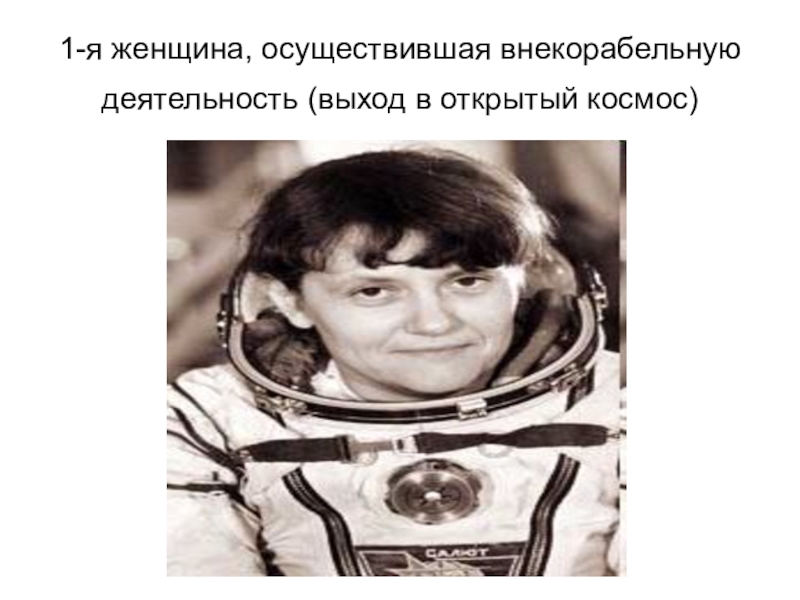 Слайд 81-я женщина, осуществившая внекорабельную деятельность (выход в открытый космос)