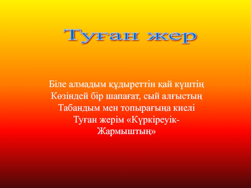 Презентация, доклад на тему Жергілікті ақын Б.Нұрғазиев Туған жер