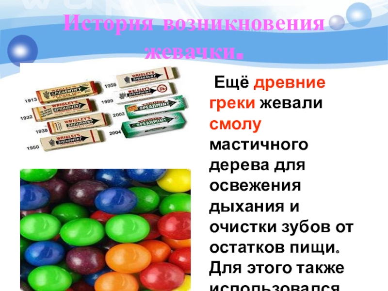 1.Ознакомиться с историей возникновения жевательной резинки.