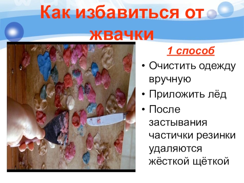 80-90) испачканную одежду. Резинка расплавится и стечёт.