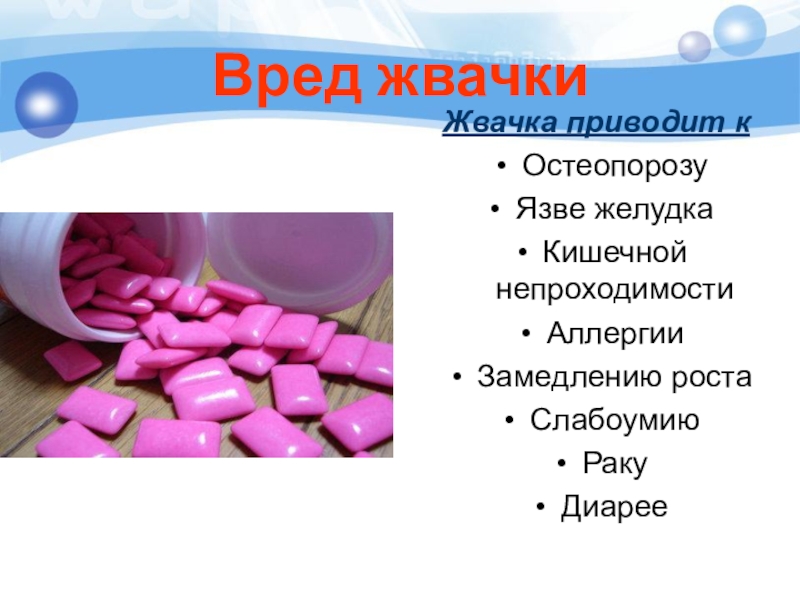 жевательной резинки на организм человека, выявить в чем ее польза и вред.