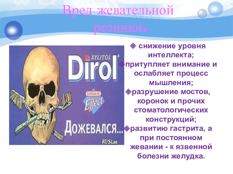 Слайд 3 Так ли полезна жевательная резинка, как нам это представляют в