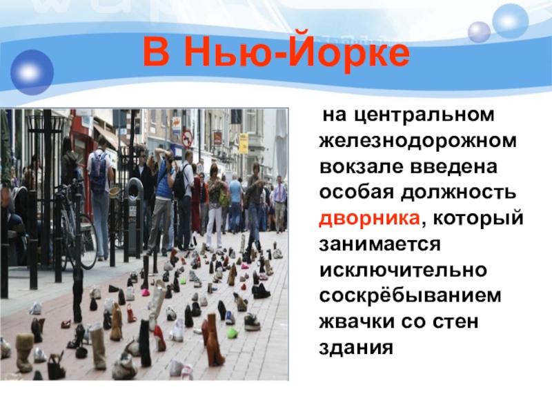 который занимается исключительно соскрёбыванием жвачки со стен здания
