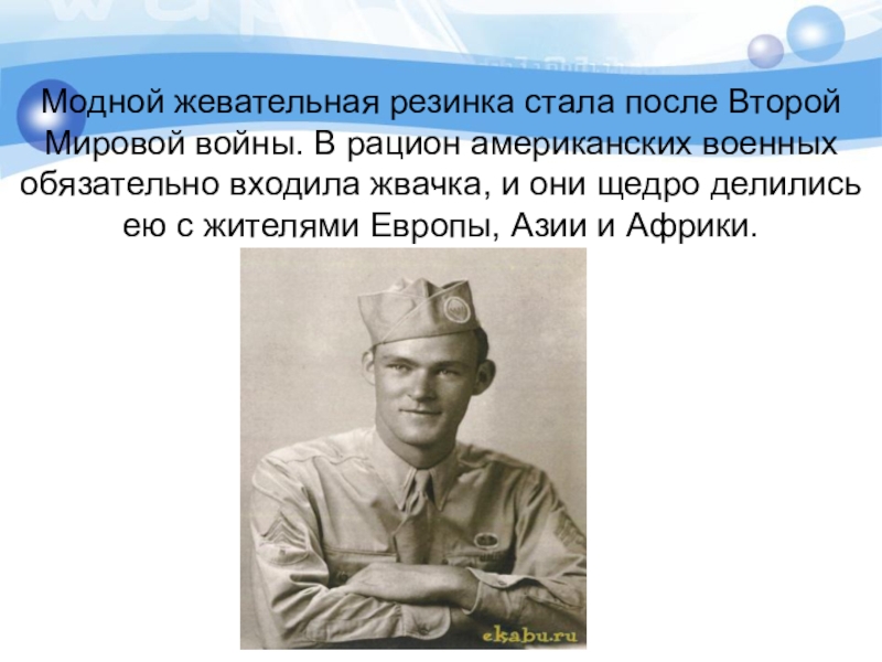 американских военных обязательно входила жвачка, и они щедро делились ею с жителями Европы, Азии и Африки.