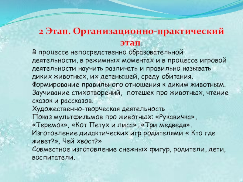 О.о«Художественно-эстетическое развитее»: познакомить детей со сказками, стихами, по данной теме; упражнять в разгадывание загадок про диких животных, создавать образы животных в различных видах изобразительной деятельности.
