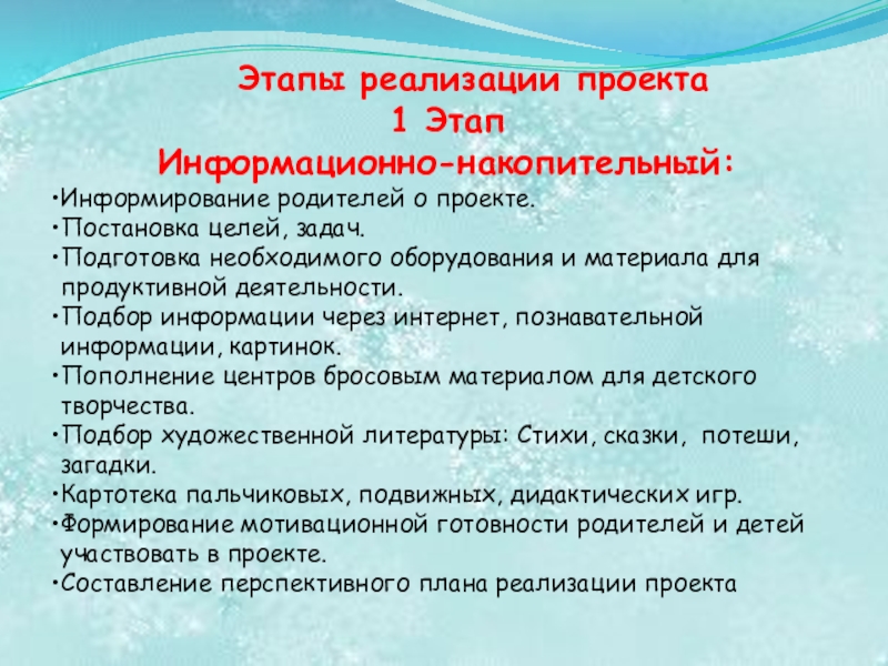 Формирование мотивационной готовности родителей и детей участвовать в проекте.