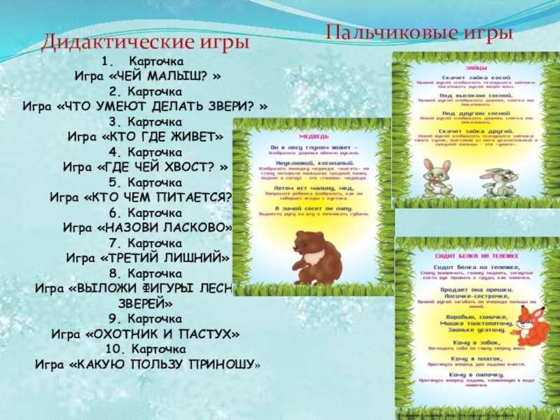 Картотека пальчиковых, подвижных, дидактических игр.