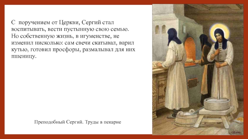 Преподобный Сергий. Труды в пекарне