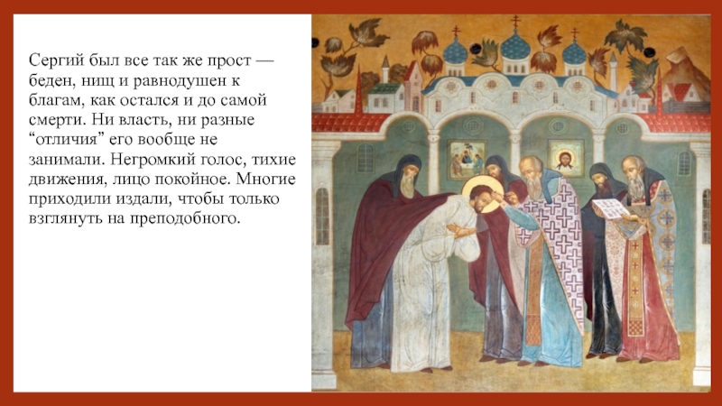 Слайд 22Сергий был все так же прост — беден, нищ и равнодушен