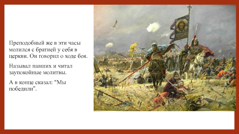 Слайд 29"Преподобный Сергий. Благословение кн. Дмитрия Иоанновича со дружиною на битву"