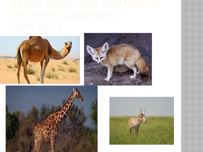 Слайд 8Какие животные обитают в пустыне? А какие не обитают?