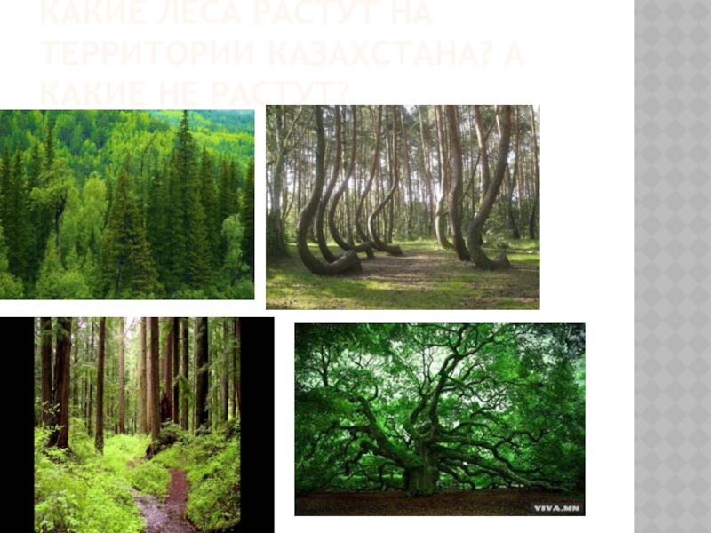 Слайд 9Какие леса растут на территории казахстана? А какие не растут?