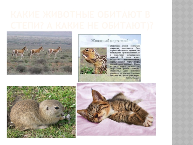 Слайд 6Какие животные обитают в степи? А какие не обитают)?