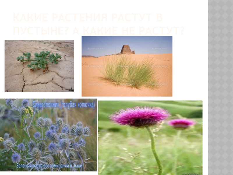 Слайд 7Какие растения растут в пустыне? А какие не растут?