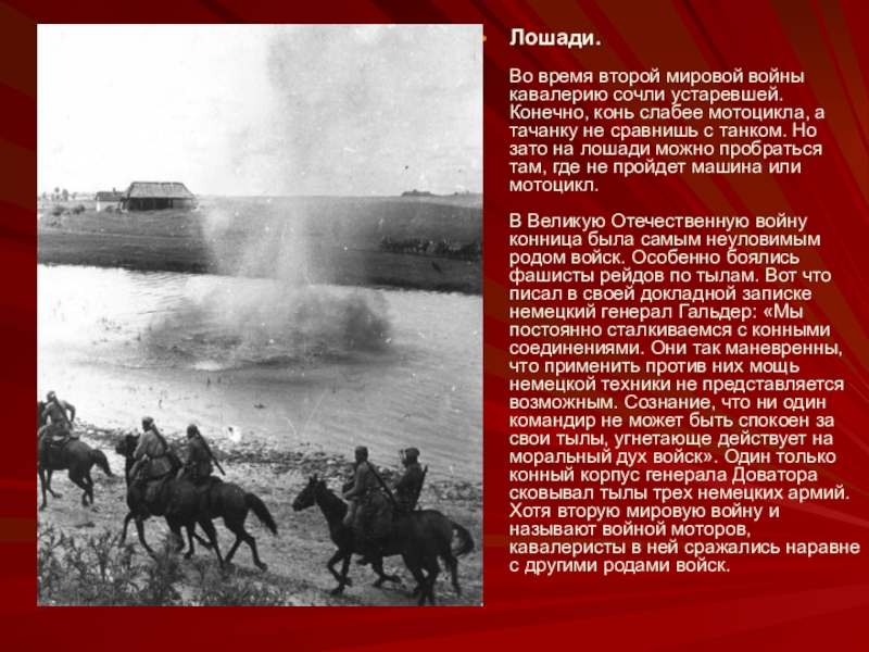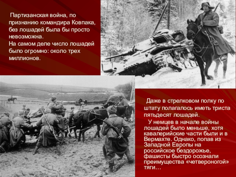 Партизанская война, по признанию командира Ковпака, без лошадей была бы просто невозможна.