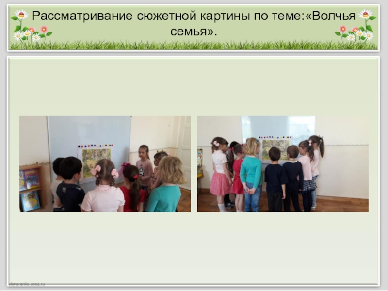 Слайд 11Рассматривание сюжетной картины по теме:«Волчья семья».