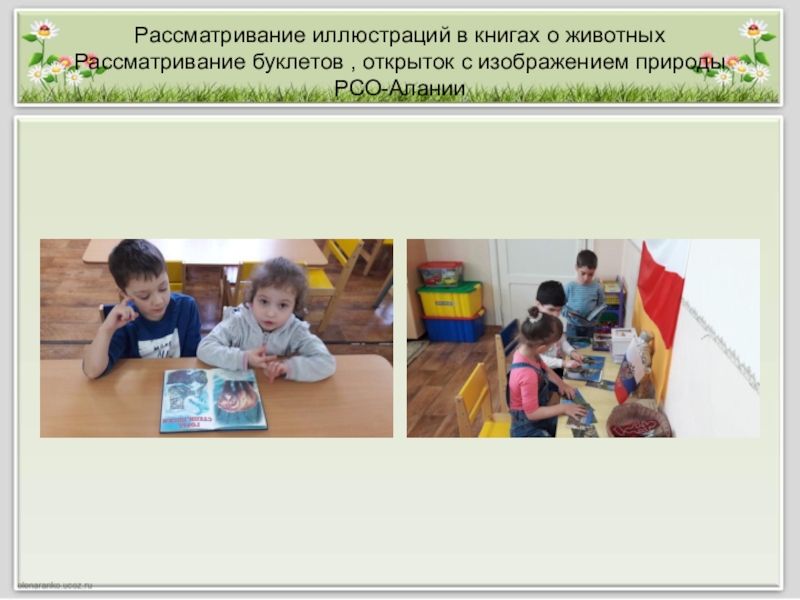Слайд 14Рассматривание иллюстраций в книгах о животных