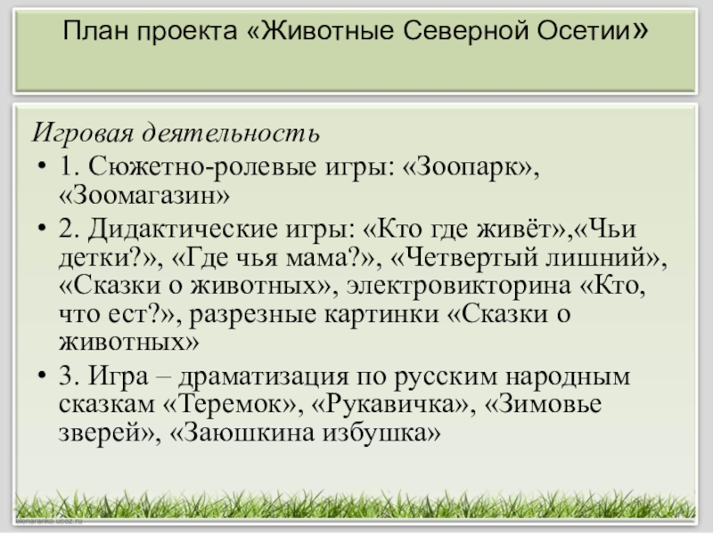 Слайд 6План проекта «Животные Северной Осетии»