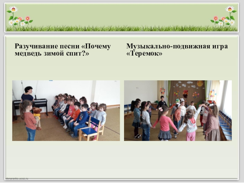 Слайд 34Разучивание песни «Почему медведь зимой спит?»