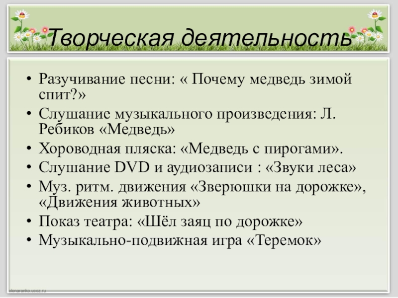 Разучивание песни: « Почему медведь зимой спит?»