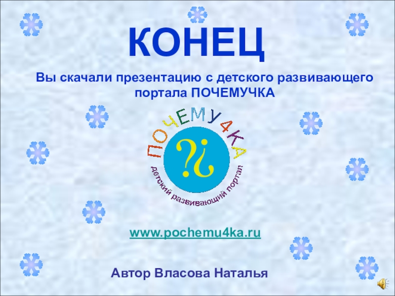 КОНЕЦВы скачали презентацию с детского развивающего портала ПОЧЕМУЧКАwww.pochemu4ka.ruАвтор Власова Наталья