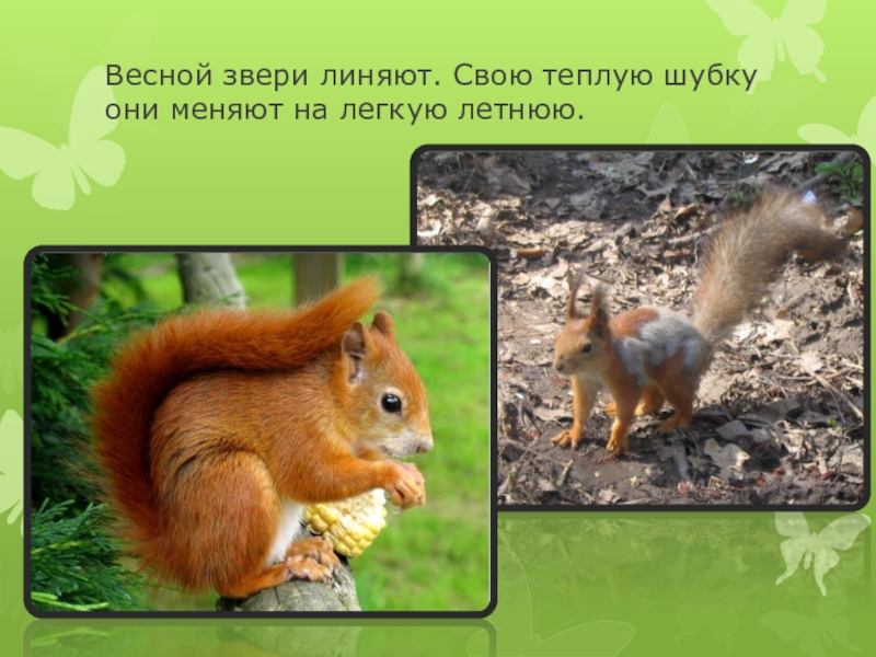 Слайд 8Весной звери линяют. Свою теплую шубку они меняют на легкую летнюю.