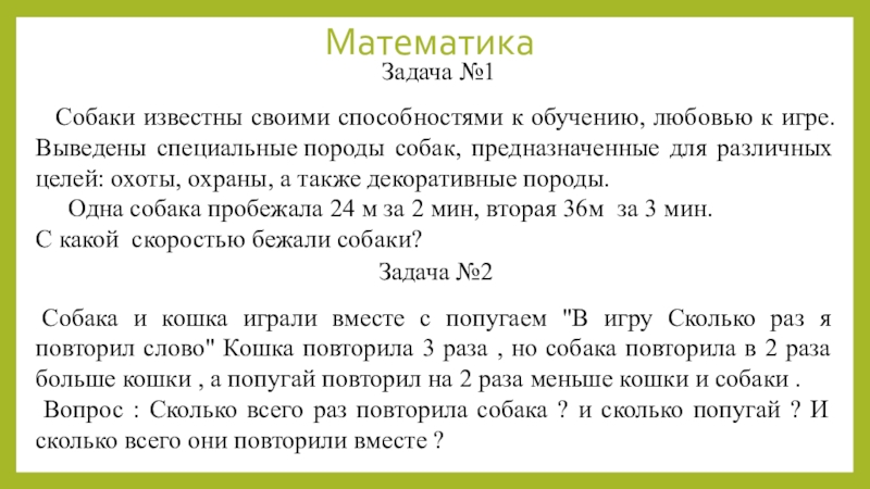 Собака и кошка играли вместе с попугаем "В игру Сколько раз я повторил слово" Кошка повторила 3 раза , но собака повторила в 2 раза больше кошки , а попугай повторил на 2 раза меньше кошки и собаки .