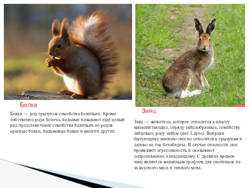 Заяц — животное, которое относится к классу млекопитающие, отряду зайцеобразные, семейству зайцевые, роду зайцы (лат. Lepus). Вопреки бытующему мнению они не относятся к грызунам и далеко не так безобидны. В случае опасности они проявляют агрессивность и оказывают сопротивление нападающему. С древних времен заяц является желанным трофеем для охотников из-за вкусного мяса и теплого меха.