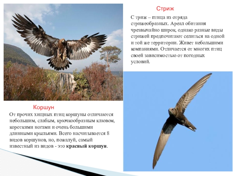 С триж – птица из отряда стрижеобразных. Ареал обитания чрезвычайно широк, однако разные виды стрижей предпочитают селиться на одной и той же территории. Живет небольшими компаниями. Отличается от многих птиц своей зависимостью от погодных условий.