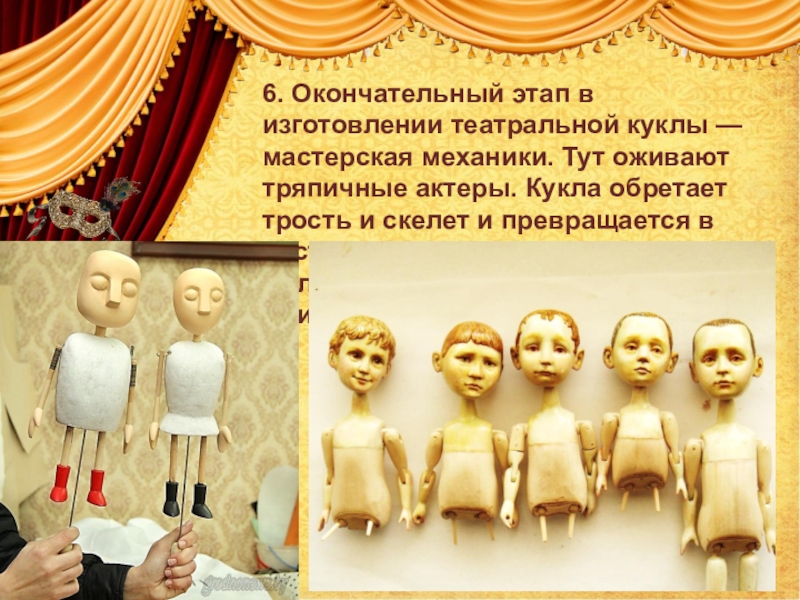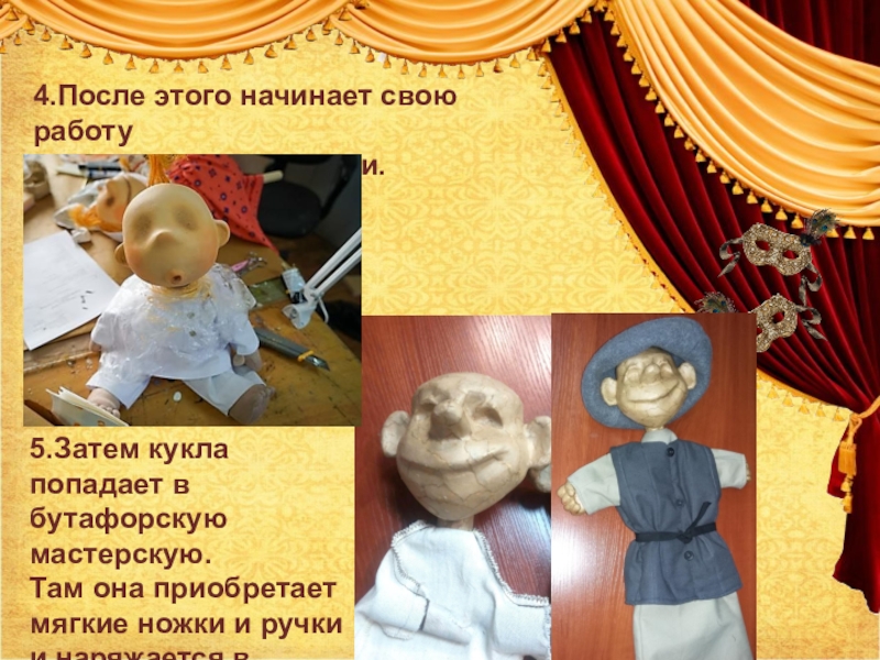 Слайд 305.Затем кукла попадает в бутафорскую мастерскую.